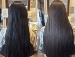 パサパサでまとまらない髪やハリコシがなくなってきたと感じる方など様々なお悩み解消し、サラサラでつやのある仕上がりは、今までの美容室のヘアカラーとの違いに感動していただけます。