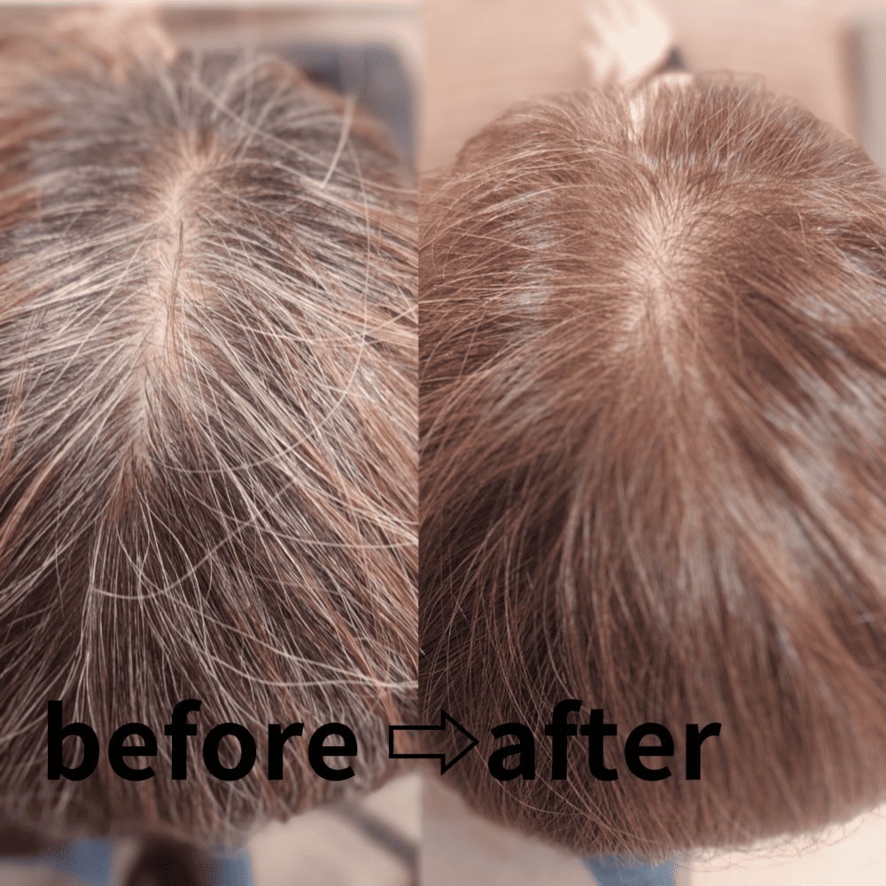 *今回の場合では、カラーの繰り返しによるダメージと判断し、ハーブマジックカラーで髪と頭皮をケアしつつ施術することに決定しました。